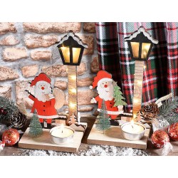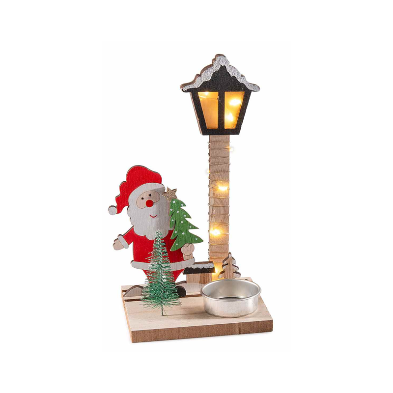 DECORACIÓN MADERA NAVIDAD TEALIGHT LED PAPÁ NOEL