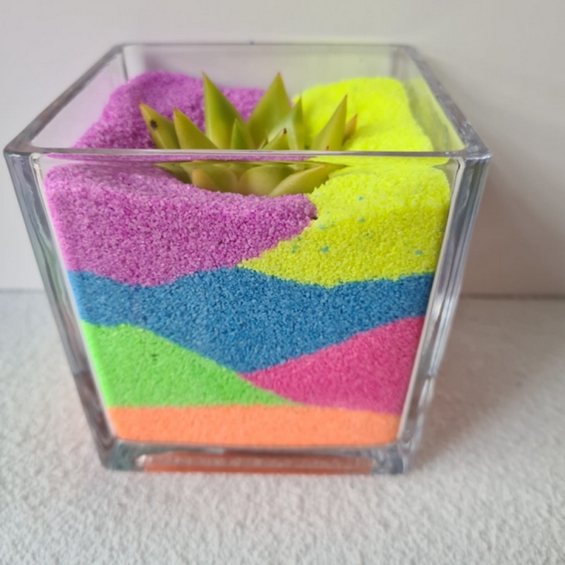 MACETA CRISTAL ARENA CON SUCULENTA (B)