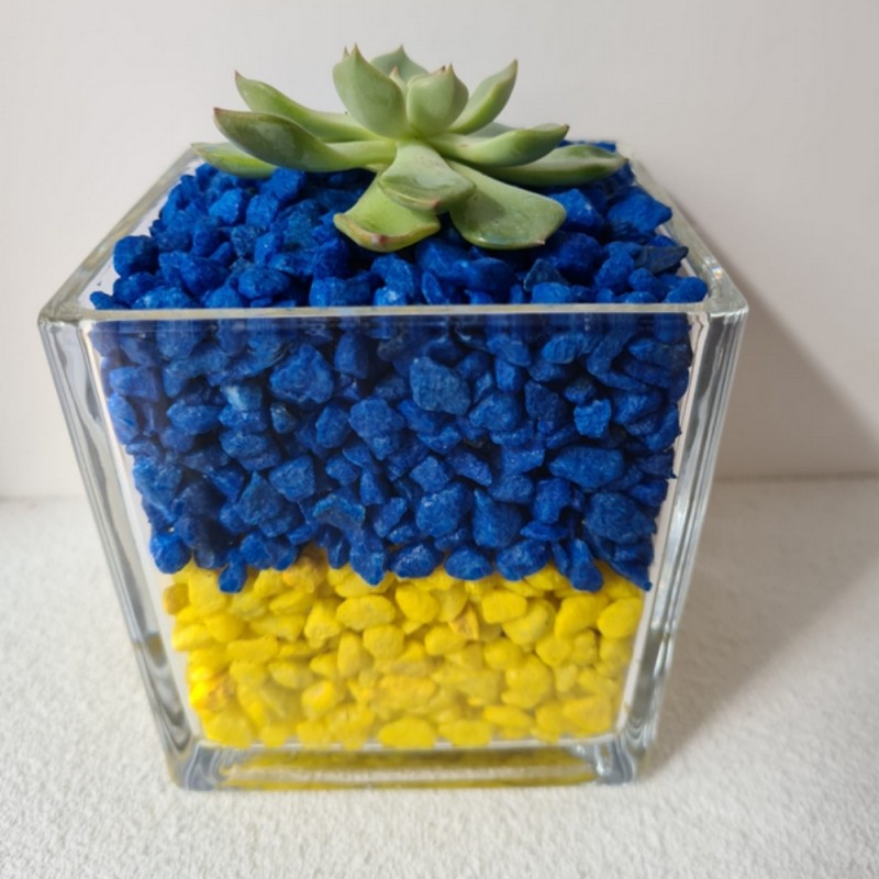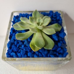 MACETA CRISTAL PIEDRAS BICOLOR Y SUCULENTA (A)