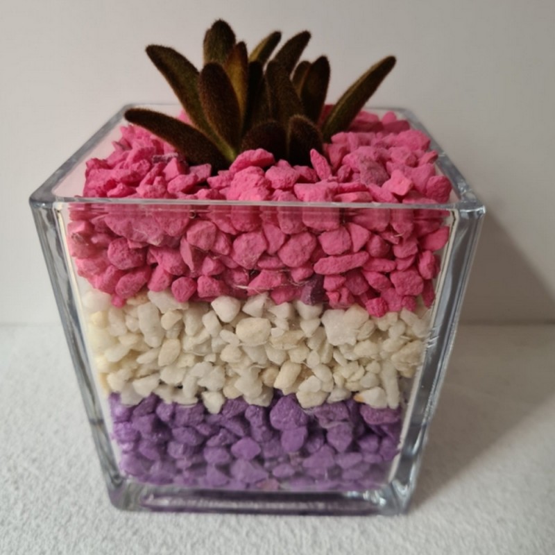 copy of MACETA CRISTAL PIEDRAS BICOLOR Y SUCULENTA (A)