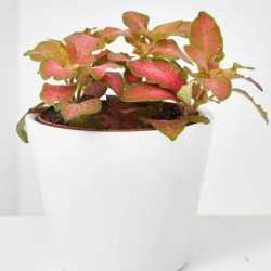 La planta pequeña Fittonia verschaffeltii roja es una planta ornamental muy decorativa, conocida por sus hojas verdes con llamativas nervaduras en tonos rojos. Su aspecto vibrante y su tamaño compacto la convierten en una opción ideal para dar color y vida a cualquier espacio interior.