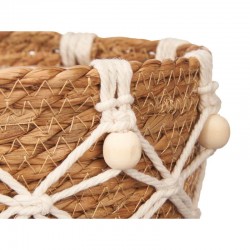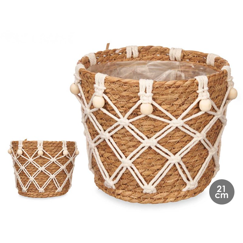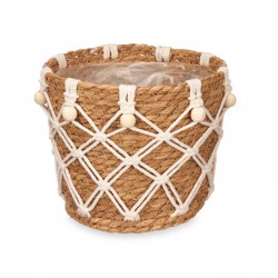 Aporta calidez y un aire bohemio a tus espacios con esta maceta decorativa tejida a mano.