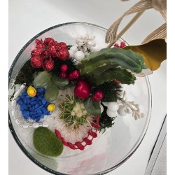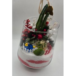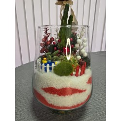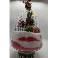 Este Terrario Navideño en Cristal es una pieza decorativa exclusiva que combina elementos naturales y detalles festivos para crear un pequeño paisaje invernal lleno de encanto. Dentro de la elegante urna de cristal, encontrarás un conjunto de plantas y adornos navideños cuidadosamente distribuidos: un reno decorativo, detalles en rojo brillante, mini vallas, piedras de colores y una base en capas que simula nieve.